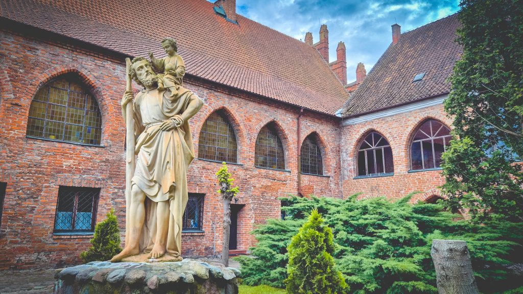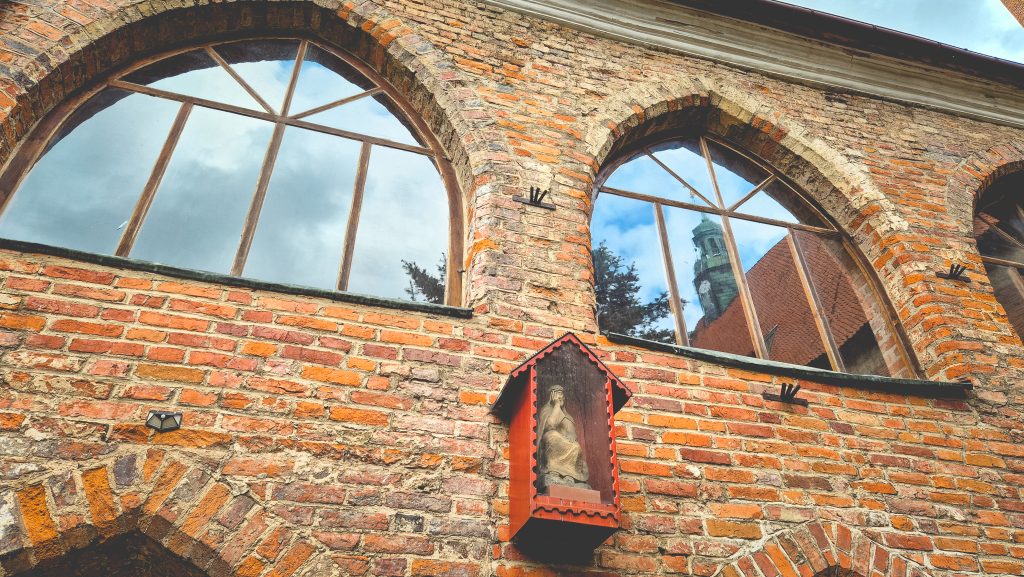 Obok bazyliki rozciąga się dawny kompleks budynków biskupich – rezydencja, domy kanoników oraz imponujące kolegium kanonickie – z zamkniętym dziedzińcem i krużgankami, które przypominają… olsztyński zamek. To nie przypadek – oba te miejsca budowali ci sami mistrzowie, dbając o trwałość i wieczność. Zamek Kapituły Warmińskiej w Olsztynie zaczęto wznosić w 1346 roku, kolegiatę w Dobrym Mieście około 1359 roku.