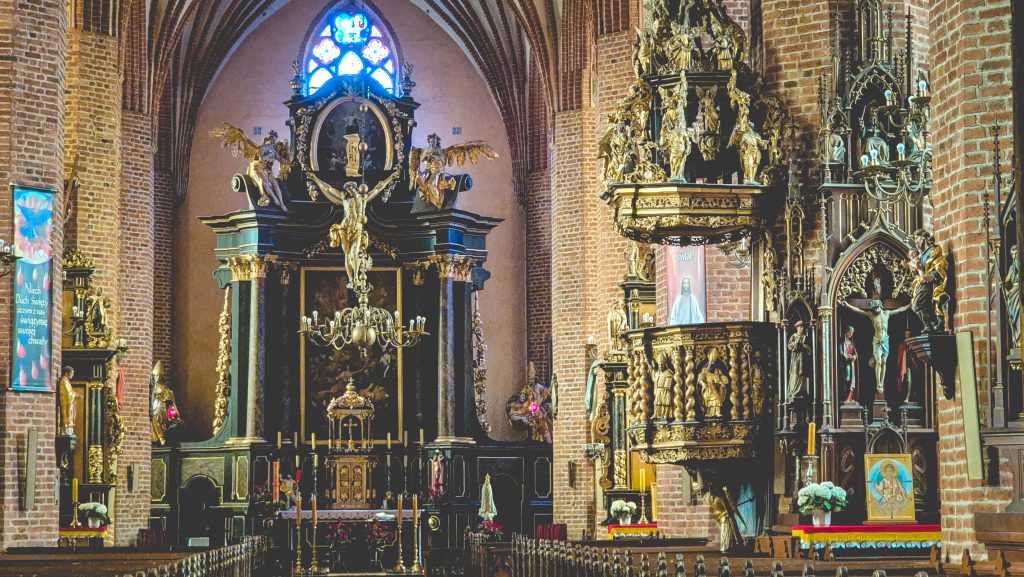 W środku bazylika robi wrażenie. Można tu zobaczyć gotyckie tryptyki, barokowe rzeźby i pozłacane ornamenty. Główne dzieło ołtarzowe fundował biskup Adam Grabowski, a wykonał je Krzysztof Perwanger – prawdziwa gwiazda XVIII-wiecznej Warmii. W świątyni znajdują się też relikwie, marmurowe tablice i organy, które można usłyszeć podczas letnich koncertów – mają 49 głosów i aż 3522 piszczałki, co robi wrażenie!