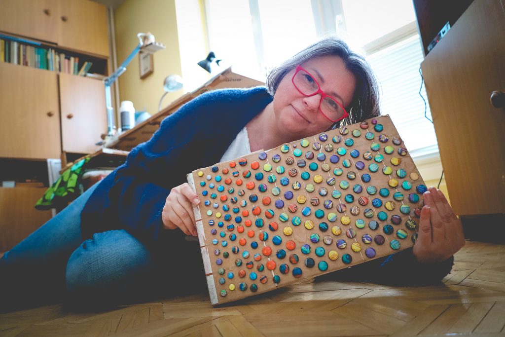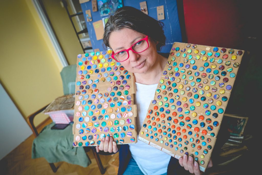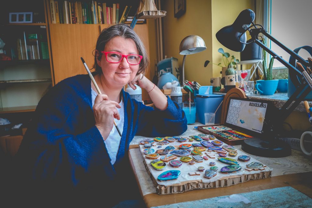 – Doszłam do takiego profesjonalizmu, że aż samej miło mi się patrzy na to, co robię. Ale cały czas jest to ręczna robota – podkreśla artystka. — Ludzie czasem mnie pytają: jak długo robi pani jedne kolczyki? Odpowiadam, że dwa tygodnie. I widzę zdziwienie w oczach. Zaczynam od tego, że najpierw maluję obrazek, potem go wycinam, następnie przyklejam na drewienka, potem łączę w pary, dodaję krople żywicy, przyklejam sztyfty. No i tak mniej więcej od obrazka do końcowego dzieła mijają dwa tygodnie. Ale w tym czasie nie robię tylko jednej pary. Jest ich nieraz nawet 200 par na raz! Można je kupić na targach, w sklepach w całej Polsce, w księgarniach, skansenach, muzeach. Mam też sklep internetowy, więc wystarczy kliknąć. Ale najlepiej jest, gdy można je obejrzeć, wziąć w palce i dostrzec to, co mają do opowiedzenia.