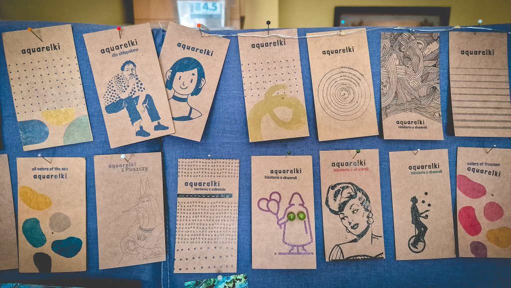 – Ludzie zalewają mnóstwo rzeczy żywicą. Kwiaty, serwetki… Też zaczęłam zalewać wszystko, co wpadło mi w ręce, ale okazało się, że jednak akwarele zalewane żywicą dają najlepszy efekt. I stało się to właściwie przez przypadek. Wylałam żywicę na moje akwarelowe prace. I wtedy okazało się, że to wygląda genialnie! – śmieje się Magda. – Ale Aquarelki powstały też z nadmiaru niezbyt udanych prac malarskich. Ciężko było mi wyrzucić niektóre akwarele, bo chociaż jako całość prezentowały się przeciętnie, to miały fragmenty bardzo przyjemne. Bez żalu więc je pocięłam i zrobiłam z nich Aquarelki. Prawdę mówiąc nie spodziewałam się, że będą aż tak efektowne. Dziś zalewam tylko własne rysunki. To jest technika, którą wymyśliłam sama, nikt tego nie robił przede mną. I tak powstały Aquarelki. To biżuteria z akwareli. Z Warmii oczywiście.