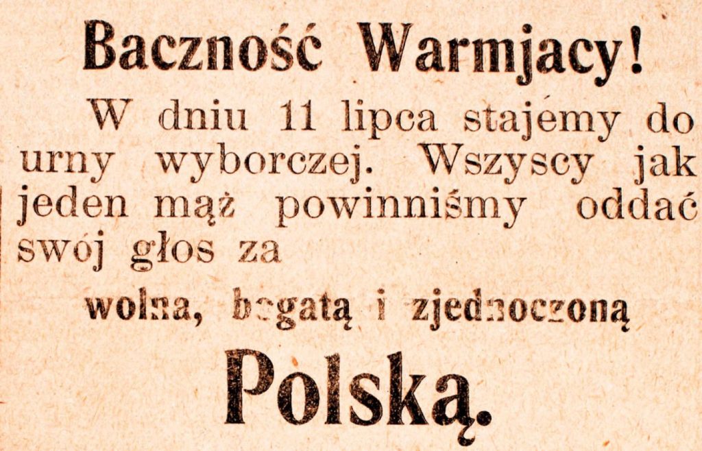 Fragment druku zachęcającego do udziału w plebiscycie w 1920 roku, fot. Wikipedia