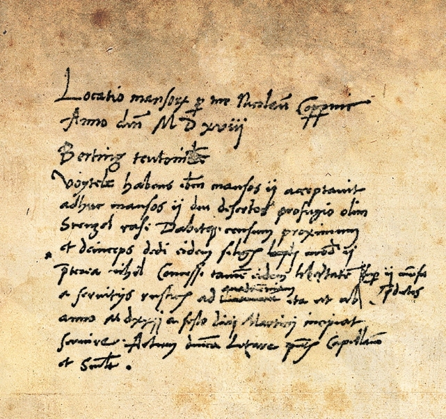 Lokacja łanów [dokonana] przeze mnie, Mikołaja Kopernika, roku Pańskiego 1517 (Locatio mansorum per me Nicolaum Coppernic Anno Domini MDXVII)