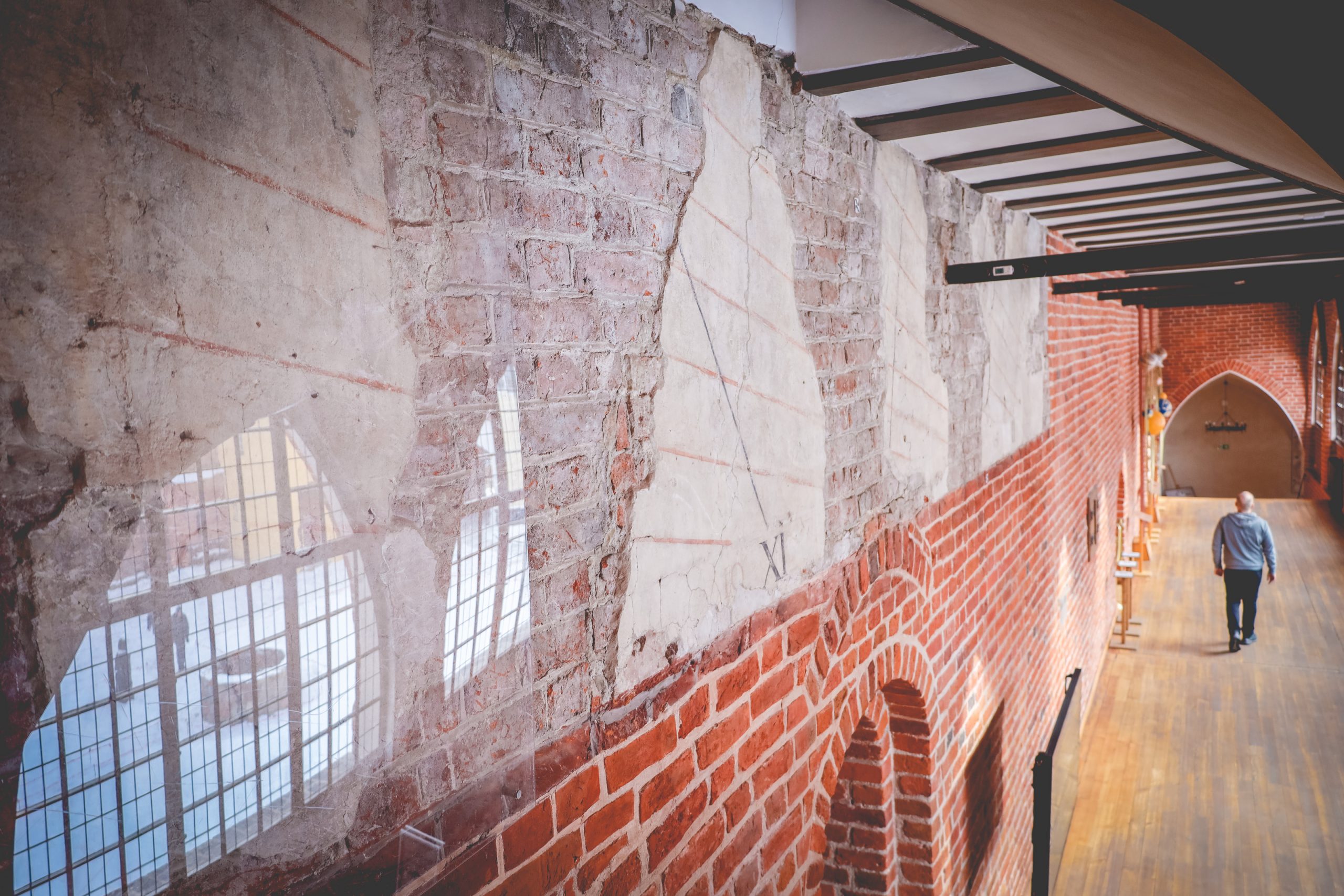 Lektor: „Obserwacje astronomiczne Mikołaj Kopernik prowadził także podczas swojego pobytu na zamku w Olsztynie, kiedy sprawował urząd administratora dóbr kapitulnych. W krużganku do dziś zachowały się duże fragmenty jego tablicy astronomicznej. Służyła astronomowi do przedstawienia pozornego ruchu Słońca w dniach bliskich równonocy wiosennej i jesiennej.”