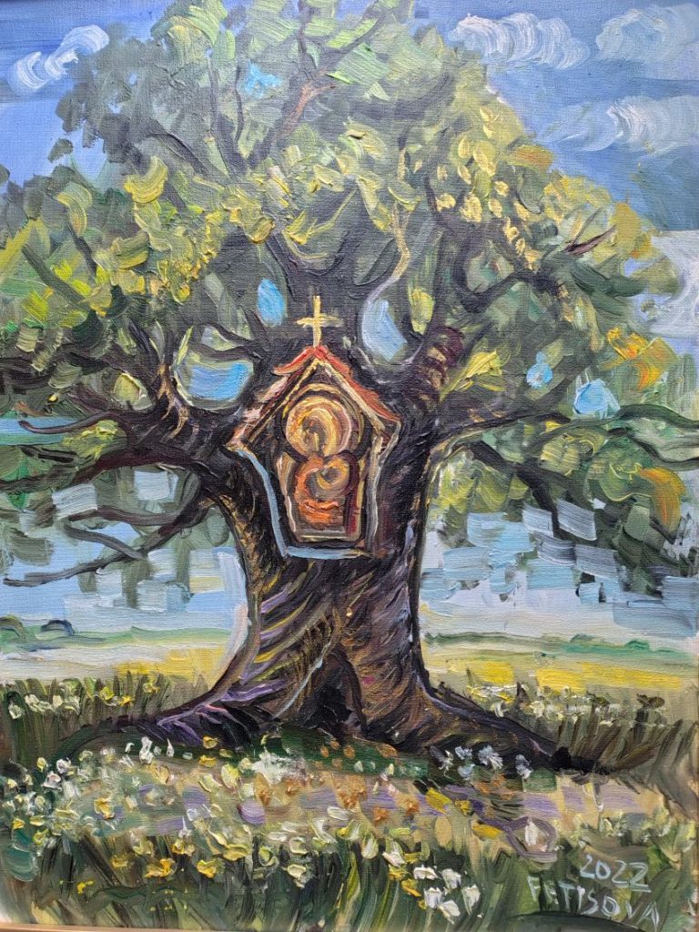 Jerzy Buczyński, z urodzenia Mazowszanin, a z wyboru Warmiak, społecznik i regionalista, stworzył historię Adama i Ewy, sięgającą 150 lat wstecz – tyle, ile szacuje się wiek dębów. W jego opowieści młoda Ewa wraca leśną drogą z koszem pełnym dorodnych kurek z warmińskiego gospodarstwa nad jeziorem Perszkowo, na skraju wsi Zielona Górka. Gdy dochodzi do rozdroża, klęka przed kapliczką zawieszoną na dorodnym dębie – jednym z wielu symboli wiary, które od wieków wpisują się w krajobraz Warmii. Nagle zauważa przystojnego młodzieńca. To Adam, strażnik leśny z dywickiego lasu.