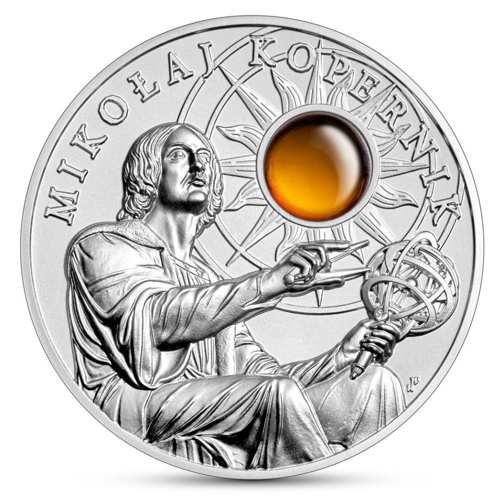 W 2023 roku, wraz z 20-złotowym banknotem Narodowy Bank Polski wydało również wykonaną ze srebra monetę o nominale 50 zł. Moneta zawiera dodatkowy element — wklejkę bursztynową. Rewers monety przedstawia fragment pomnika Mikołaja Kopernika w Warszawie oraz stylizowany wizerunek promieni słonecznych. Na awersie poza stałymi elementami, takimi jak wizerunek orła ustalony dla godła Rzeczypospolitej Polskiej, nominał oraz oznaczenie roku emisji, został umieszczony wizerunek Układu Słonecznego z dzieła Mikołaja Kopernika „De revolutionibus orbium coelestium”.