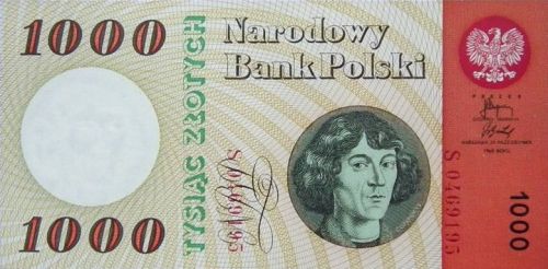 Również wcześniej Kopernik zdobił banknot o nominale 1000 zł, który wszedł do obiegu na początku czerwca 1965 roku. Zaprojektował go Henryk Tomaszewski i Julian Pałka. Emisja banknotu towarzyszyła obchodom tysiąclecia Państwa Polskiego, celebrowanego przez władze w kontrze do kościelnych uroczystości milenijnych. Pieniądzem tym posługiwano się aż do końca 1978 roku. Dziś, na aukcjach, osiąga cenę 40–1500 zł, w zależności od stanu.