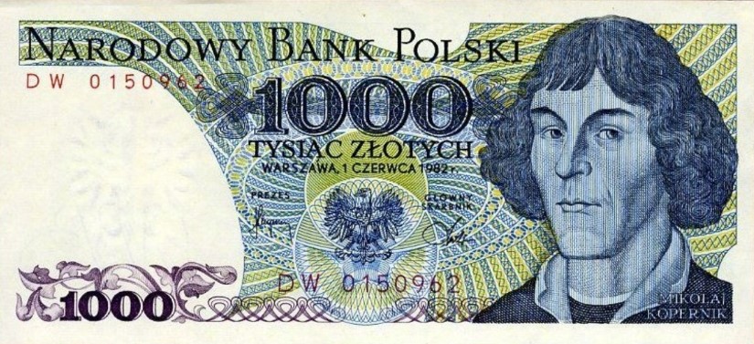 Wizerunek Mikołaja Kopernika wielokrotnie umieszczano na obiegowych oraz kolekcjonerskich monetach i banknotach. Najbardziej znany jest 1000-złotowy banknot z datą emisji 2 lipca 1975 roku. Pojawił się w cyklu „Wielcy Polacy”. Wizerunek astronoma na przedniej stronie banknotu wzorowany jest na portrecie toruńskim. Na odwrotnej stronie autor Andrzej Heidrich zilustrował Układ Słoneczny według teorii heliocentrycznej: z centralnie usytuowanym Słońcem, wokół którego po eliptycznych orbitach krąży sześć planet. Po lewej stronie widać także fragment astrolabium. Banknot tysiączłotowy z Kopernikiem pozostawał w obiegu przez ponad 20 lat. Wycofano go dopiero z końcem 1996 roku, po denominacji złotego. Do dziś jednak wielu Polaków ma go jeszcze w swojej szufladzie. Można go też kupić na aukcjach internetowych za ok. 30 zł.