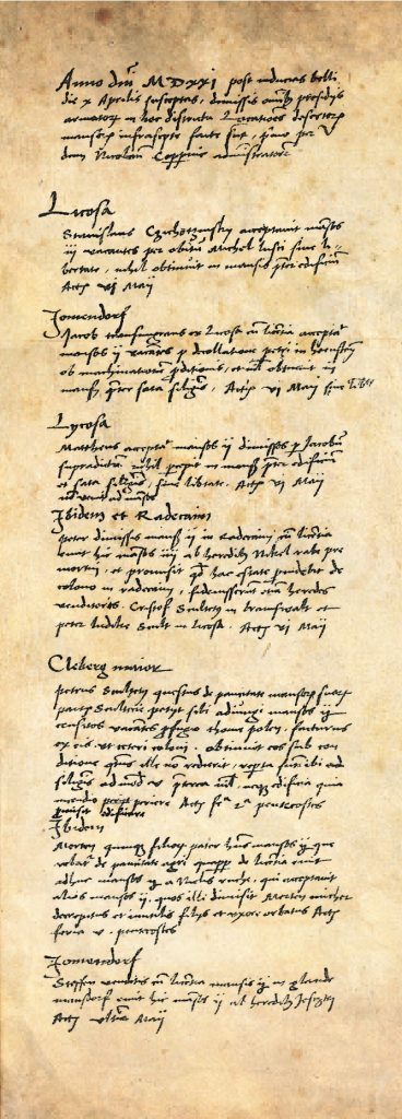 Lektor: „Zapisy obejmują okres od 10 grudnia 1516 do 31 maja 1521 roku. Kopernik dokonał 72 lokacji, odnotowując 136 imion i nazwisk nowych osadników.”